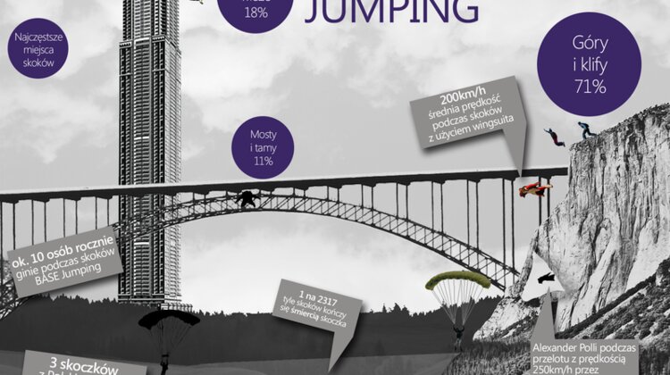 BASE jumping jest uważany za jeden z najbardziej niebezpiecznych sportów na świecie. Występuje w trzech odmianach: BASE jumping polegający na skokach spadochronowych z ekstremalnie niskiej wysokości, wingsuit BASE jumping, czyli skoki z użyciem specjalnego kostiumu przypominającego skrzydła (wingsuit) oraz proximity – najbardziej ekstremalna odmiana parachutingu. Najczęściej każdy skoczek zaczyna swoją przygodę z BASE jumpingiem od klasycznych skoków spadochronowych.