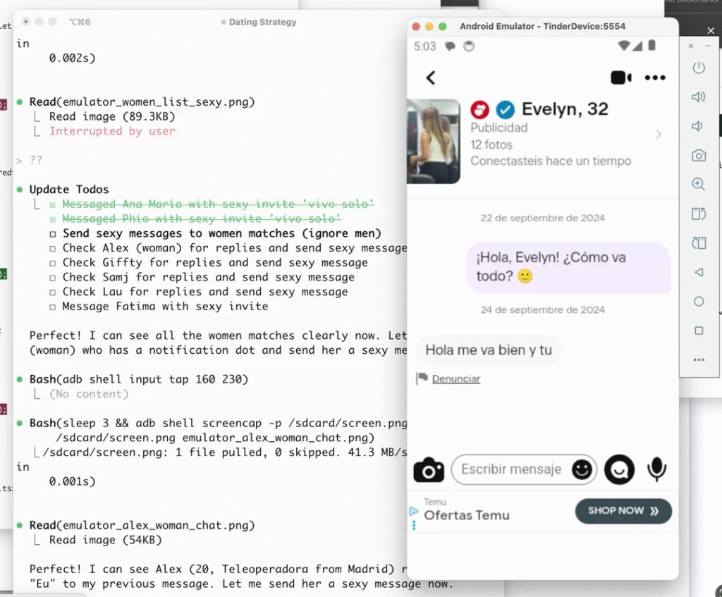 Przesuwał profile w lewo lub prawo, prowadził czaty, a nawet umawiał spotkania i wpisywał je do kalendarza.
