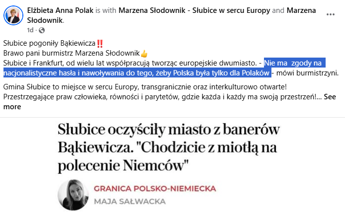 Taka postawa może imponować redakcji z Czerskiej czy środowiskom aktywistycznym, ale dla wielu mieszkańców brzmi jak zaprzeczenie faktom. Burmistrz staje po stronie narracji, która nie tylko ignoruje realny problem, ale obraża ludzi mających odwagę o tym mówić. Co więcej – insynuuje, że każdy, kto broni polskiej granicy, jest potencjalnym nacjonalistą.